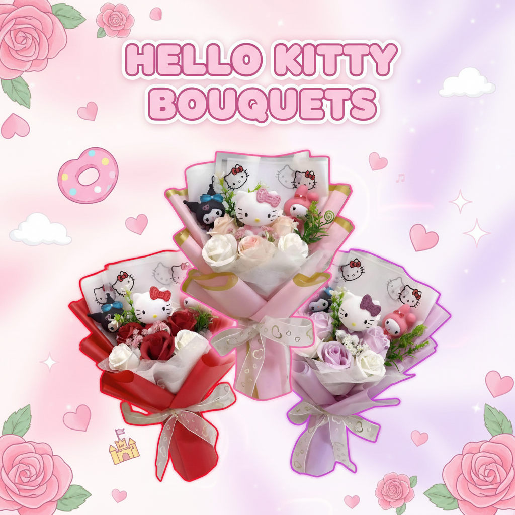 Each bouquet is lovingly handmade with Hello Kitty plushies & beautiful roses — a unique kawaii gift that never wilts! 🌸